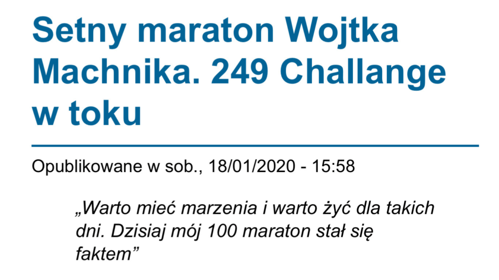 „Warto mieć marzenia i warto żyć dla takich dni. Dzisiaj mój 100 maraton stał się faktem”